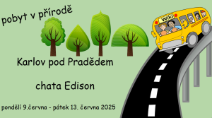 termín: 9.6. - 13.6.2025 místo: Karlov pod Pradědem, chata Edison Odjezd: pondělí 9.6.2025, v 8:00 hod Příjezd: pátek 13.6.2025, cca 15:00 hod
